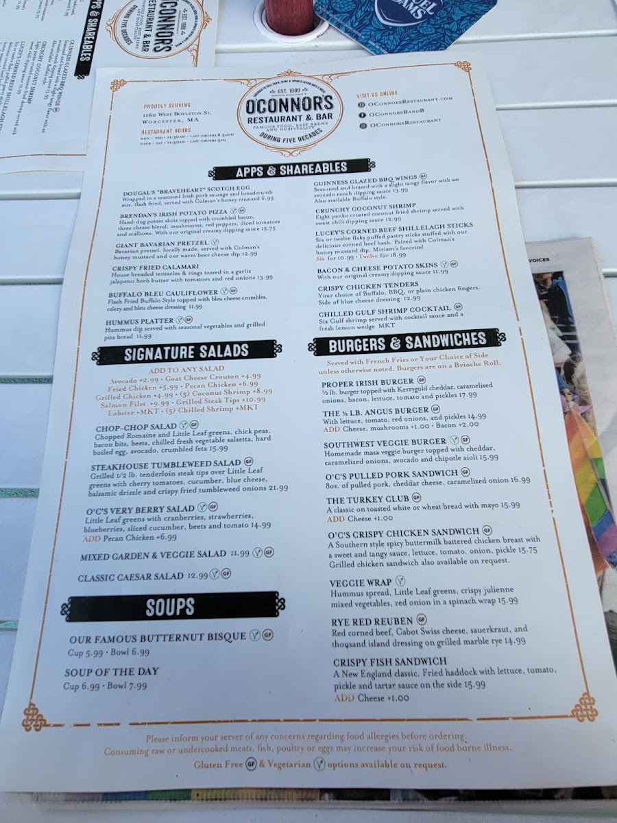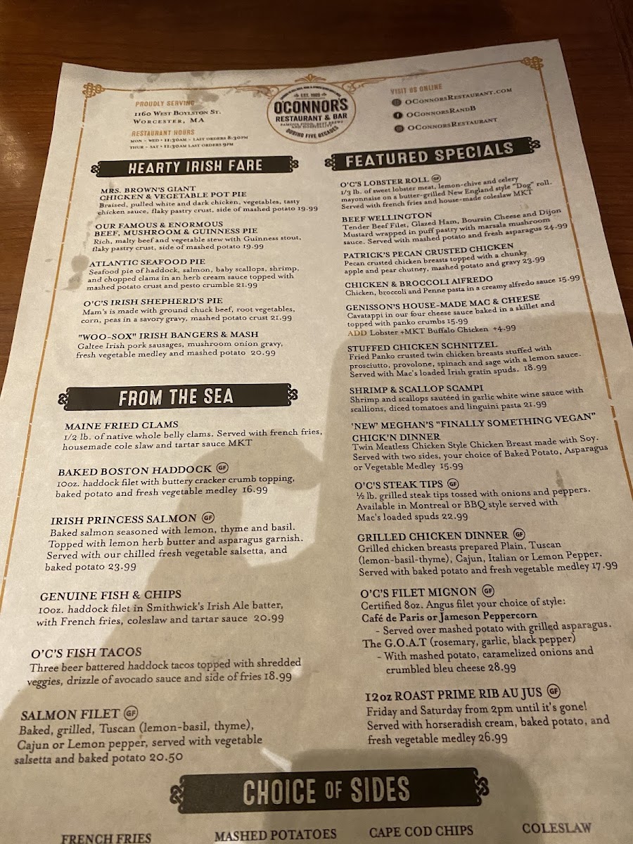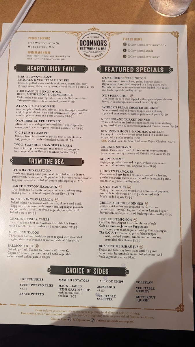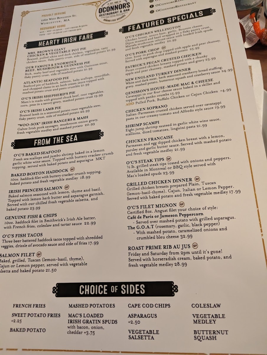 If you're in the mood for a cozy, vibrant spot to enjoy delicious food and drinks, the O'Connor's Restaurant & Bar Menu has something for everyone. Located at 1160 W Boylston St, Worcester, MA, this spot offers a diverse menu that’s sure to please both casual diners and food enthusiasts alike. Whether you're craving a hearty Irish-inspired dish, fresh seafood, or a classic comfort food, you'll find plenty of options to satisfy your appetite. Their bar menu is equally tempting, offering a great selection of beers, wines, and cocktails to pair with your meal. Each dish is thoughtfully prepared, with bold flavors and fresh ingredients that bring out the best in every bite. It's a welcoming place, perfect for a night out with friends or a casual dinner with family.